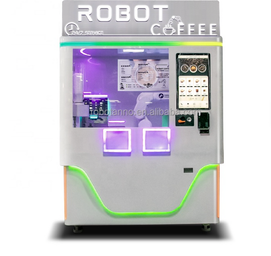 This Robotic Coffee Vending Machine delivers premium coffee on demand with fully automated brewing technology. This 24/7 operation system features an open bar design and accommodates 12 customizable coffee flavors, allowing you to tailor offerings to your customer base. With a compact footprint under 800kg, it fits seamlessly into any location. Each full material load produces up to 200 medium cups, maximizing operational efficiency between refills. Dual hot and cold brewing capabilities expand beverage options, while the integrated background management system streamlines inventory tracking, sales monitoring, and machine diagnostics remotely. Ideal for high-traffic venues seeking consistent quality and reduced labor costs.
